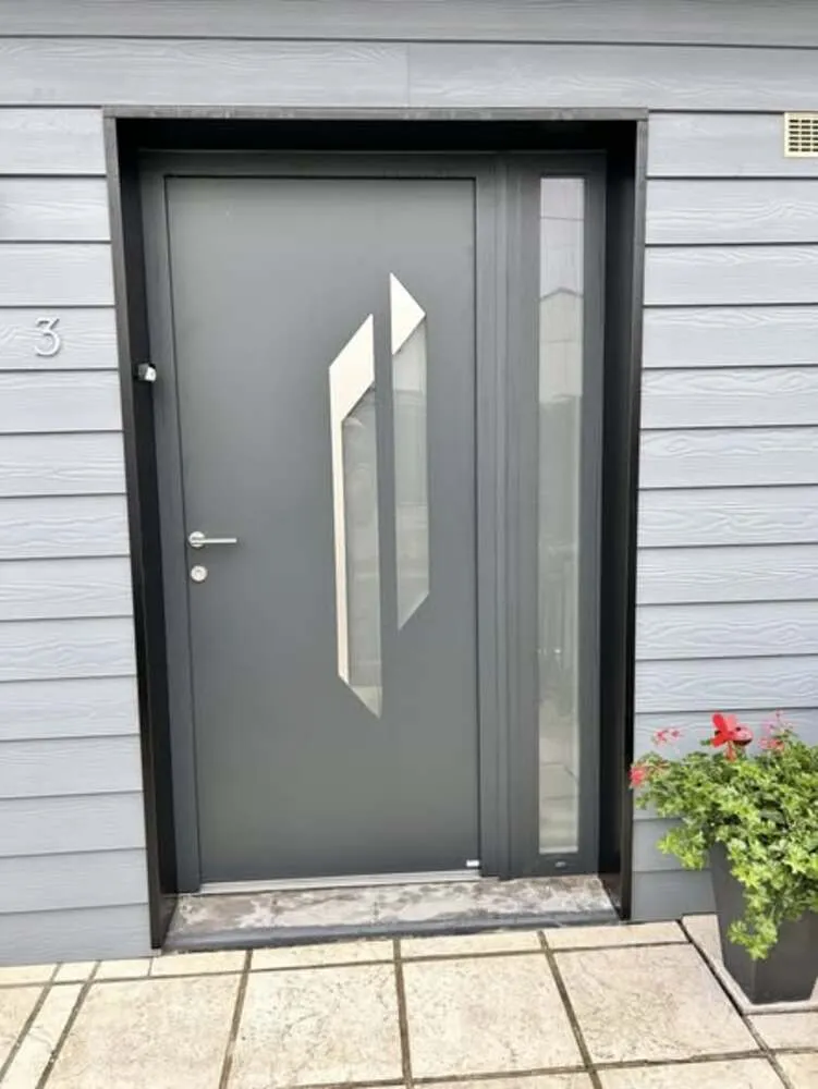 En complément du remplacement des fenêtres, l’intervention inclut la pose d’une porte d’entrée Zilten – modèle LINE 4 avec inserts inox, un modèle réputé pour son design affirmé et ses performances thermiques et sécuritaires. Cette finition haut de gamme contribue largement à valoriser la façade.